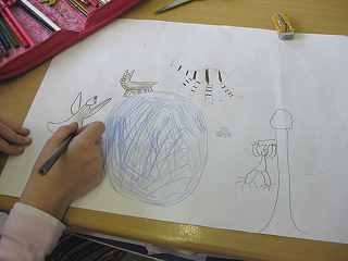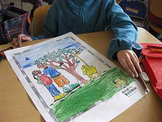 In der Klasse 1b ging es um die Geschichte von der „Jagd auf den Olivenbaum“. Unter anderem wurden Bilder hierzu ausgemalt.