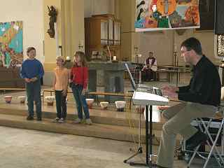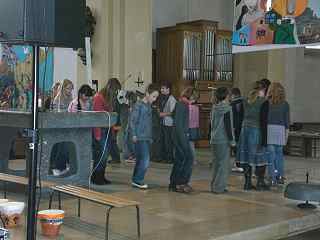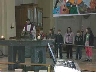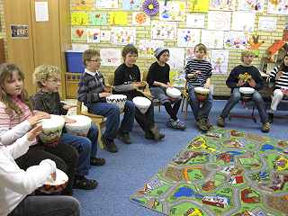In der Klasse 3b waren bereits in den vergangenen Schulwochen Trommeln gebastelt worden. Am Dienstag wurde fleißig geübt, damit im Gottesdienst ein Trommelstück aufgeführt werden kann...